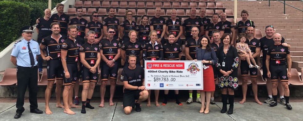 In 2020, the “400 in 4” firefighters from Fire and Rescue NSW, ACT Fire & Rescue and some representatives of the major sponsors are riding a different route from Huskisson to Mt Kosciusko over 4 days to raise money for the Burns Unit at The Children’s Hospital at Westmead.